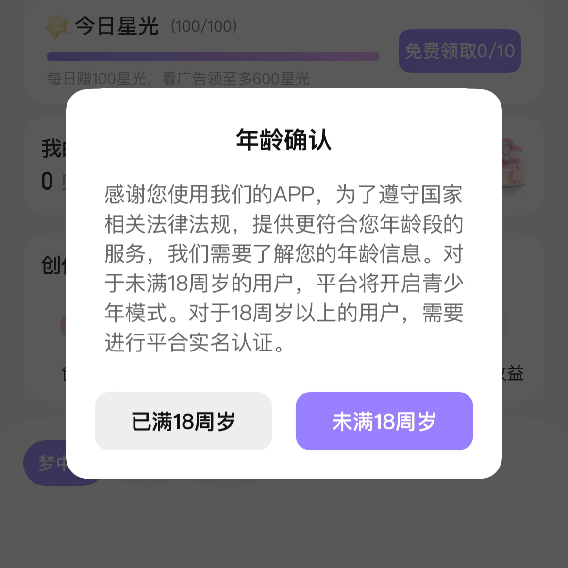 “他她它”所属公司为宿迁伴能科技无限公司,也有良多用户自创的智能体。平台将青少年模式;新版本登岸时,APP会呈现“春秋确认”的弹窗,就告诉你大要达到什么结果才行。对于答应成年人和AI聊“擦边”内容能否违规,平台的权利就是设置青少年模式。